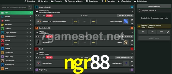 O ngr88 oferece uma grande seleção de opções de apostas em e-sports com probabilidades competitivas